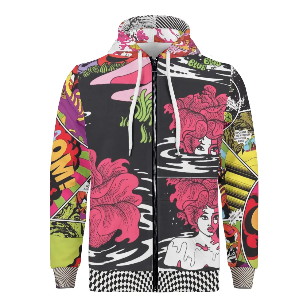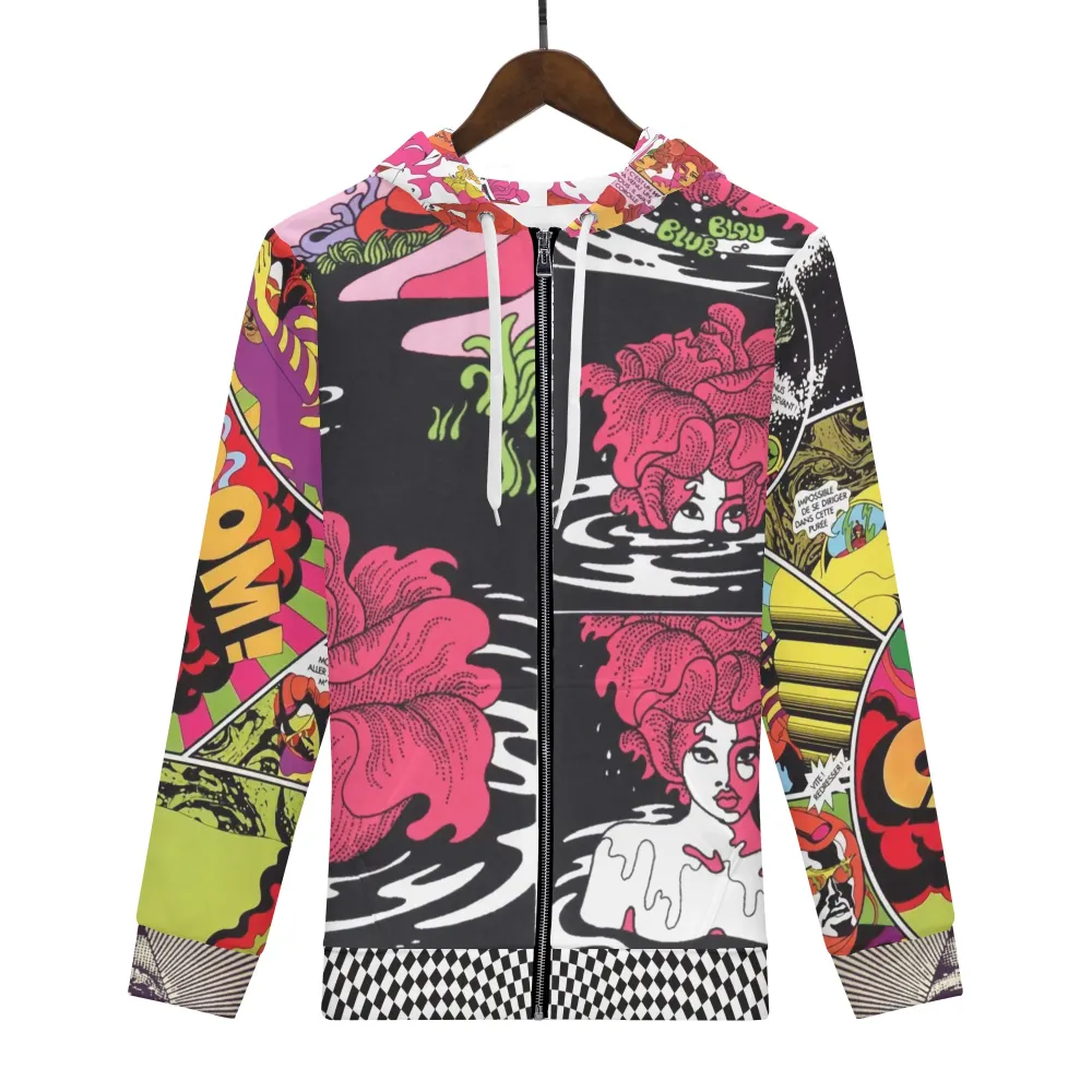 * Drawing fastenings hoodie and long sleeves dropped shoulders